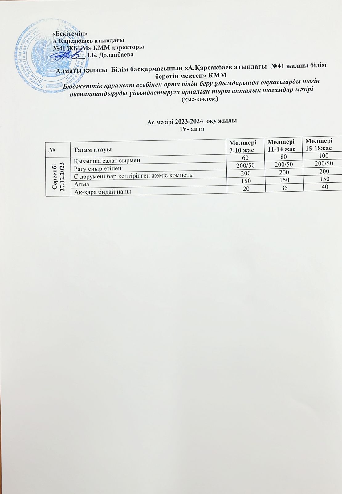 Ас мәзірі 27.12.2023 ж. 4-ші апта 3-ші күн