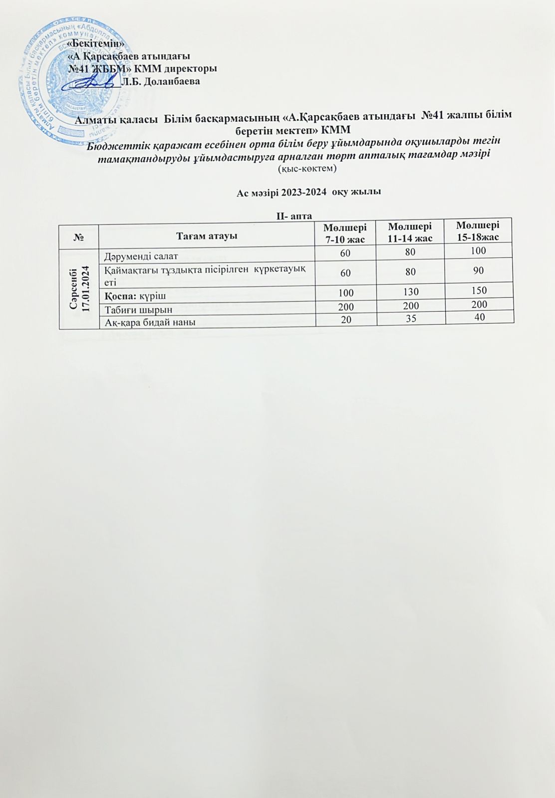 » Ас мәзірі 17.01.2024 ж. 2-ші апта 3-ші күн