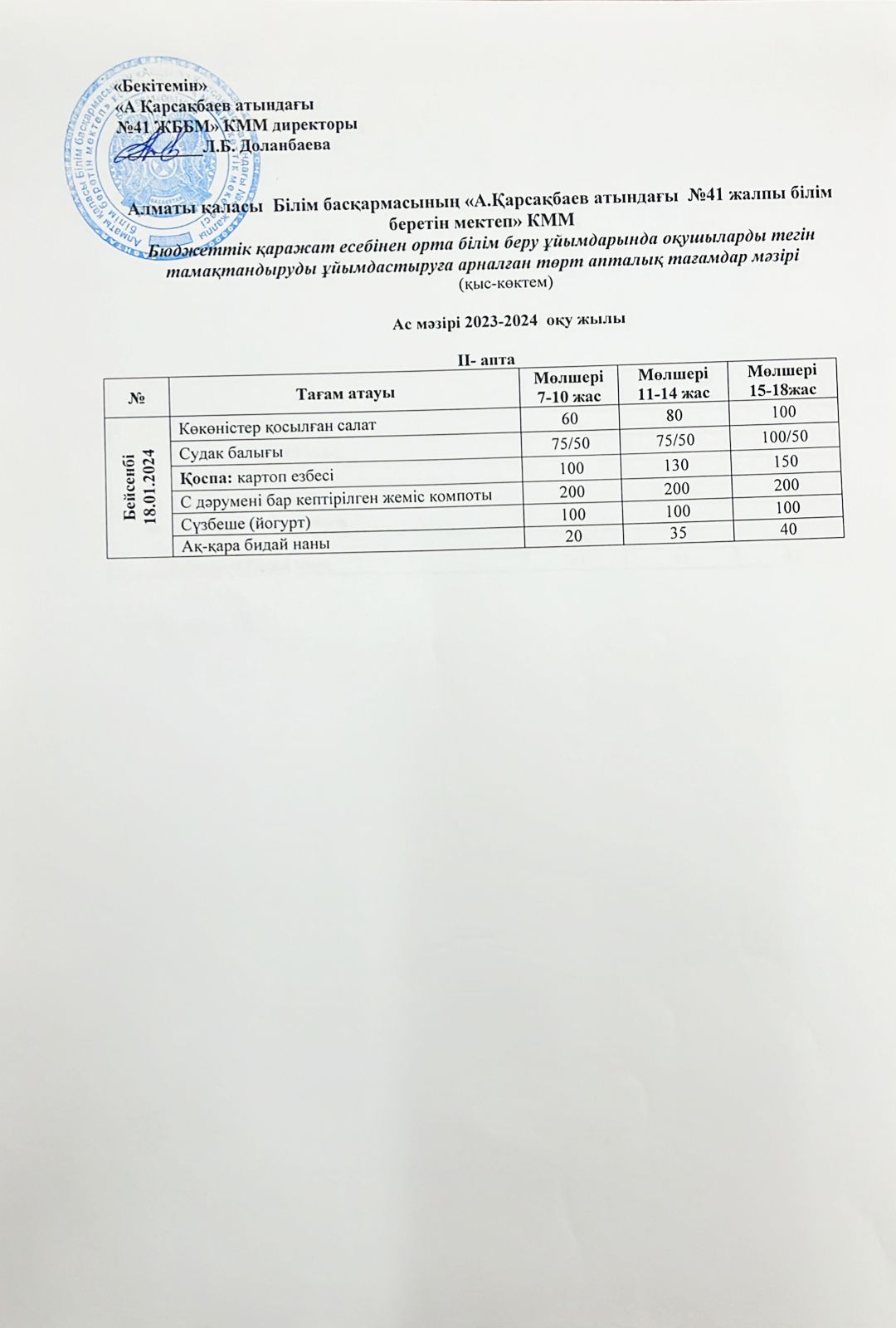 » Ас мәзірі 18.01.2024 ж. 2-ші апта 4-ші күн