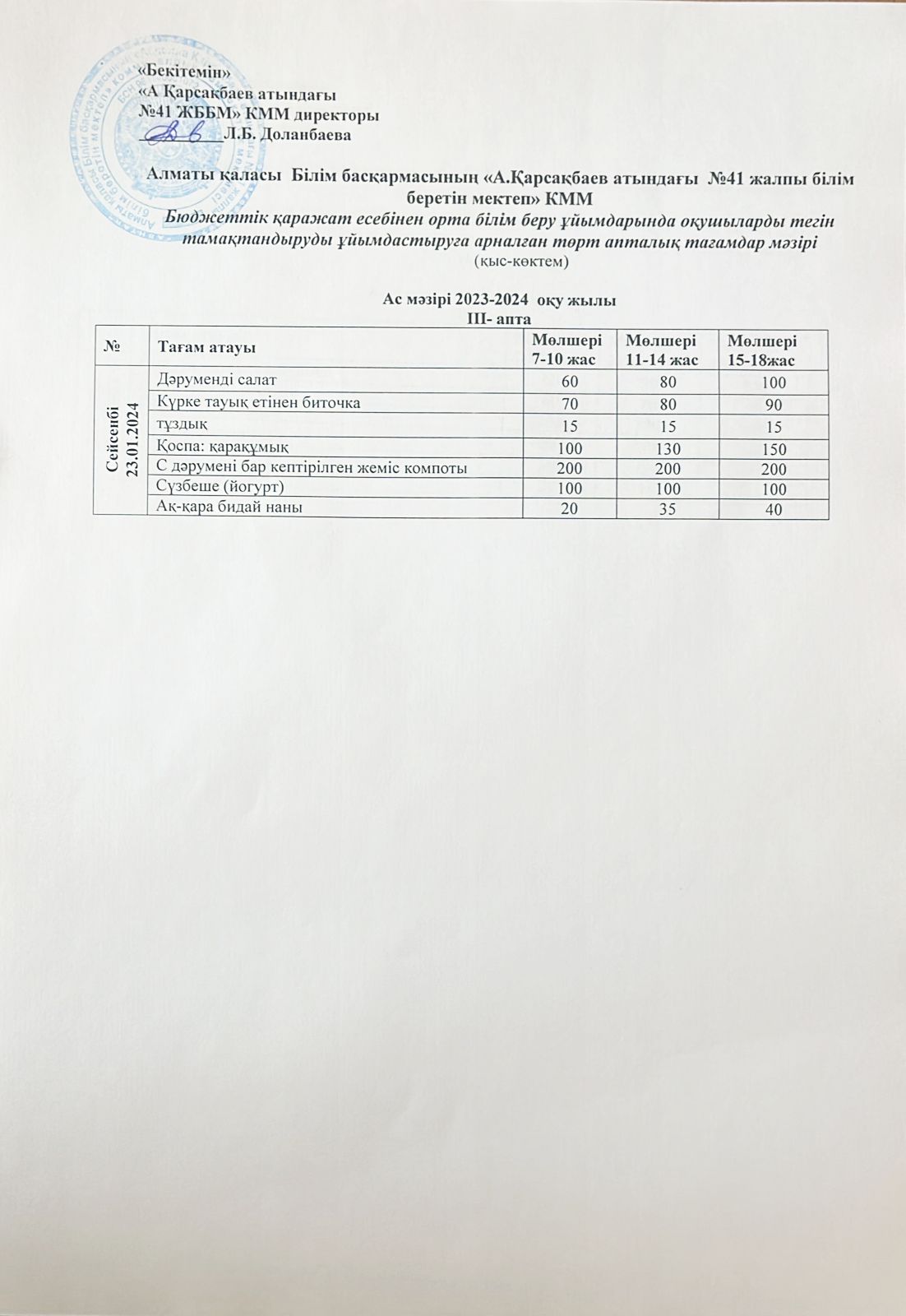 Ас мәзірі 23.01.2024 ж. 3-ші апта 2-ші күн