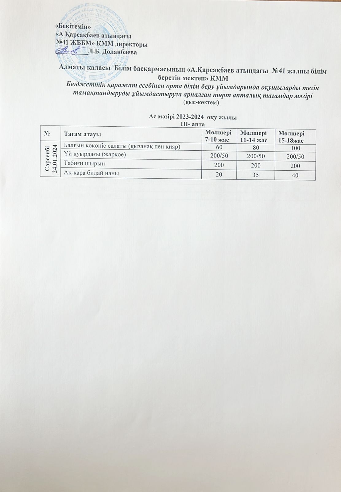 » Ас мәзірі 24.01.2024 ж. 3-ші апта 3-ші күн